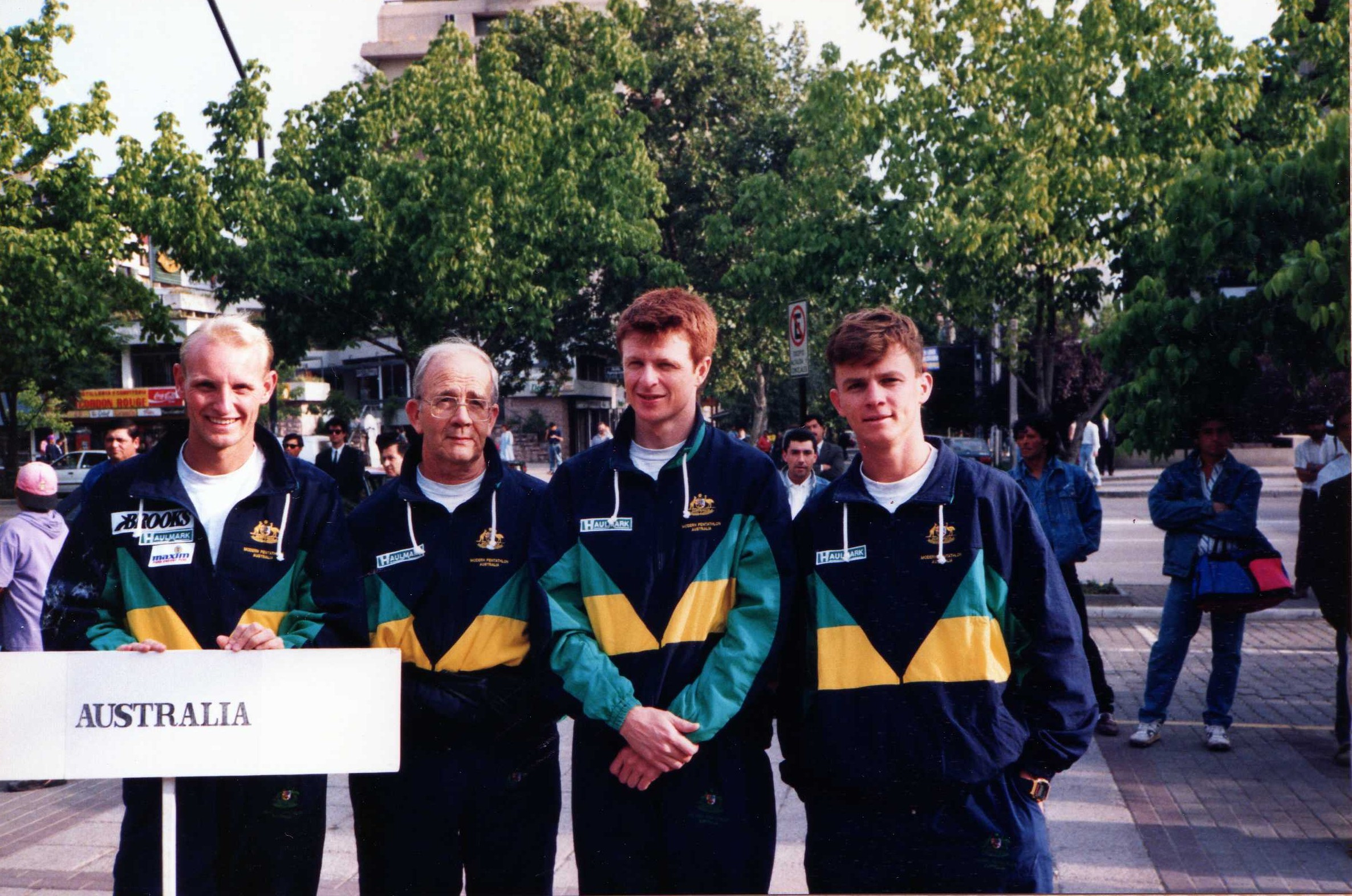 Australian Pentathlon Team (Santiago Chille) L-R: Alex Johnson, Coach O'Brien, Paul Christianson, Scott Grammer